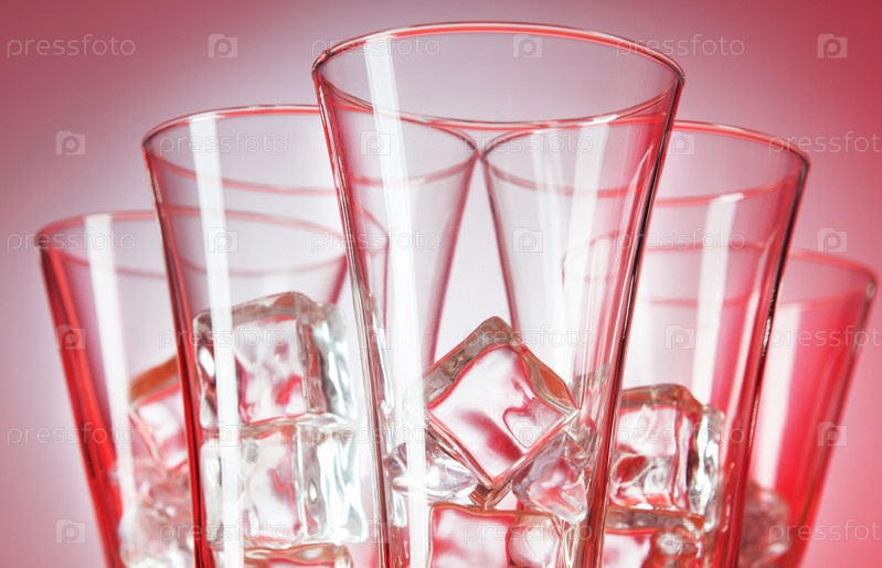 Бокалы со льдом на красном фоне