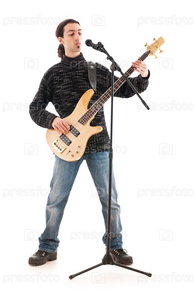 Басгитарист на белом фоне