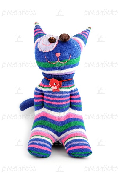 Мягкая игрушка кошка на белом фоне