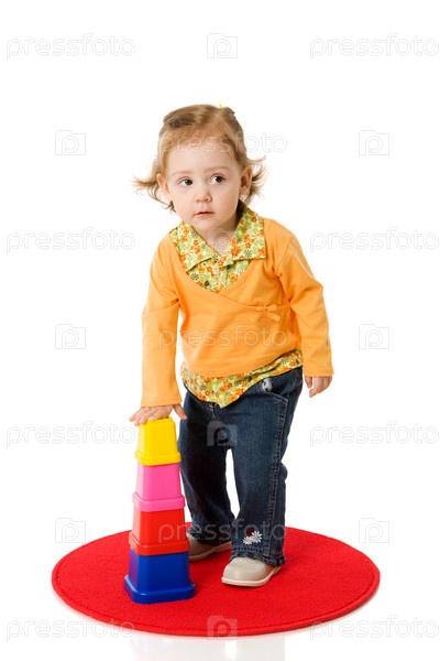 Маленькая девочка строит пирамиду