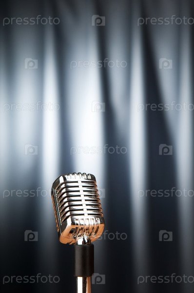 Микрофон на сером фоне