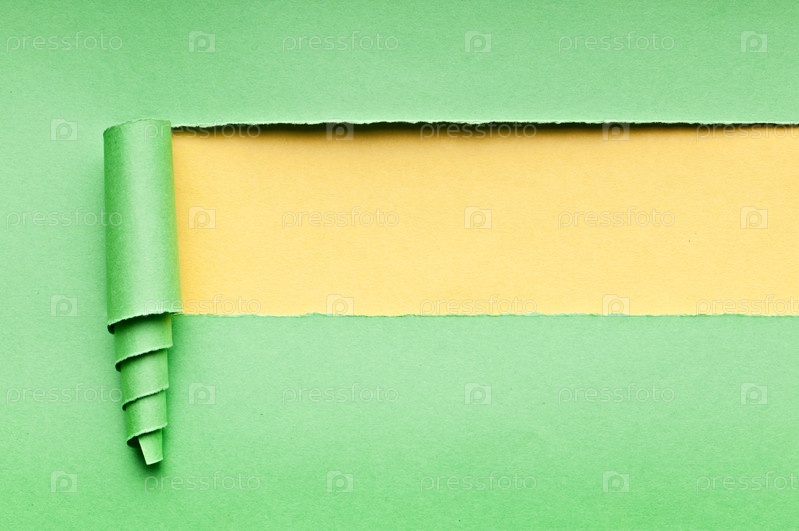 Рваная зеленая бумага на желтом фоне