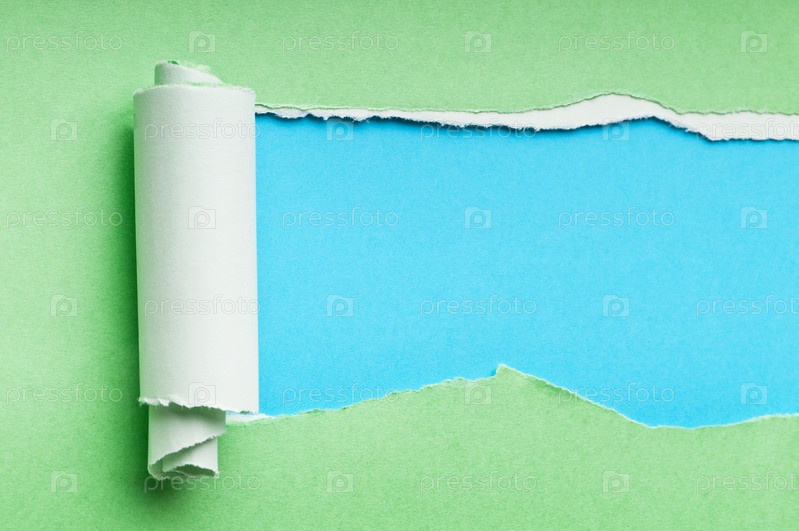 Рваная зеленая и серая бумага на синем фоне