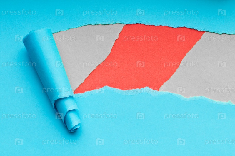 Рваная синяя бумага на серо-красном фоне