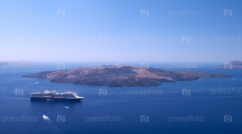 Круизный лайнер вблизи маленького острова