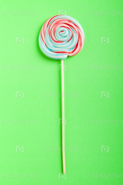 Разноцветный леденец на зеленом фоне
