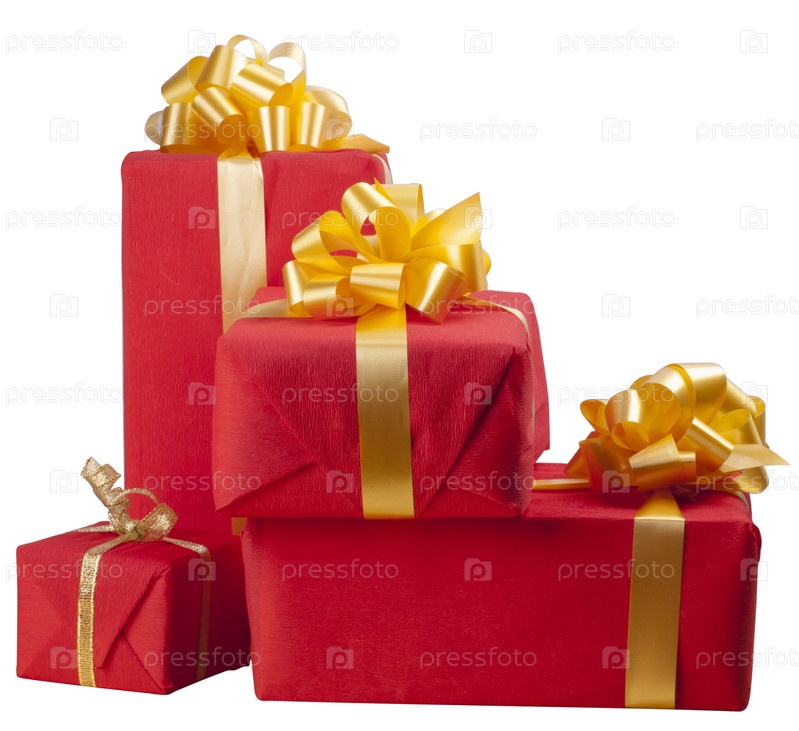 Красные подарочные коробки на белом фоне