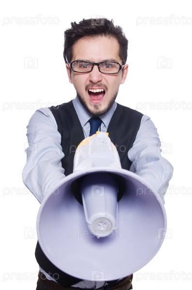 Молодой бизнесмен с громкоговорителем