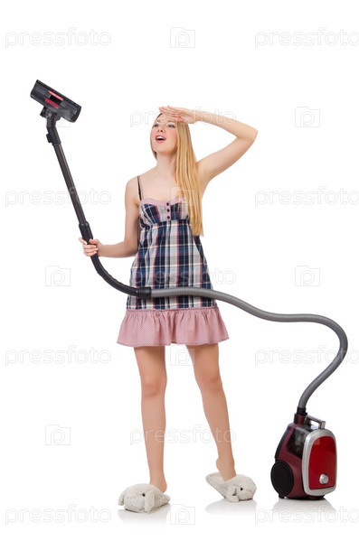 Молодая женщина с пылесосом