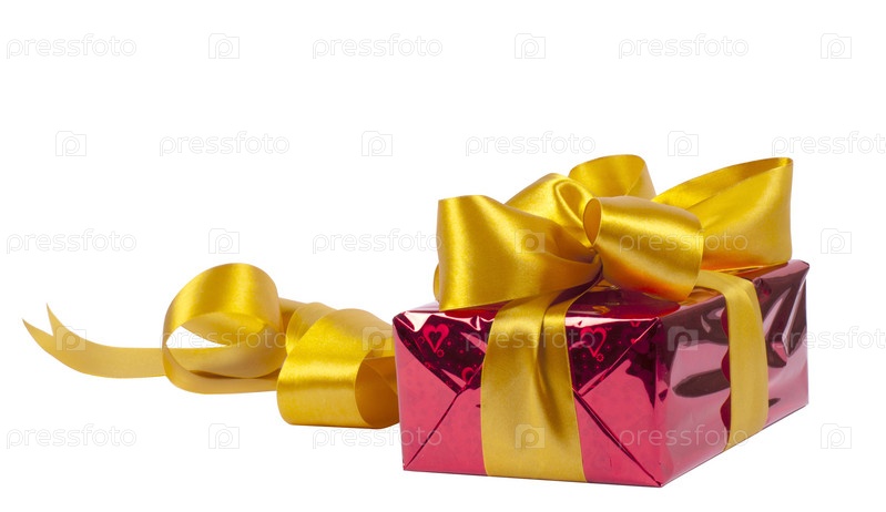 Красная подарочная коробка с желтым бантом из шелковой ленты