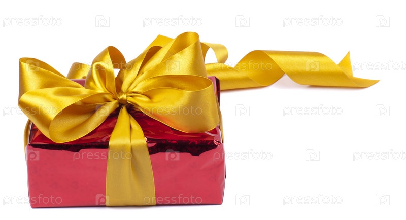 Красная подарочная коробка с желтым бантом из шелковой ленты