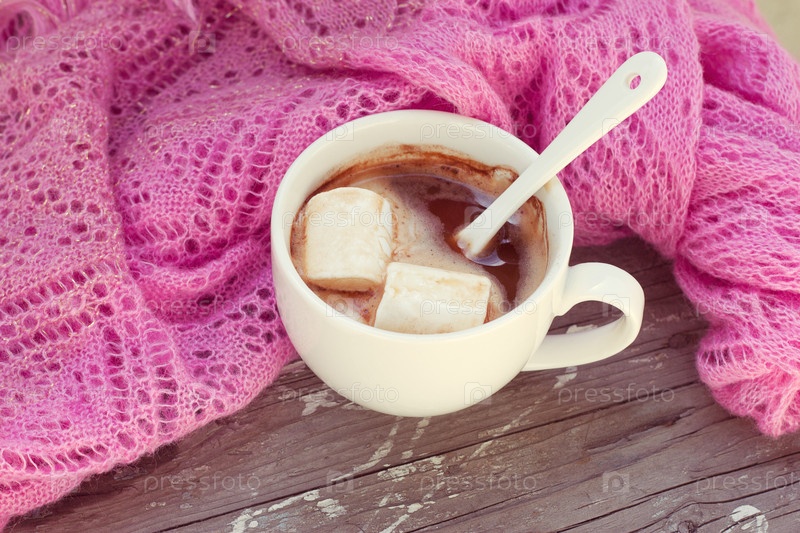 Чашка горячего шоколада и шарф