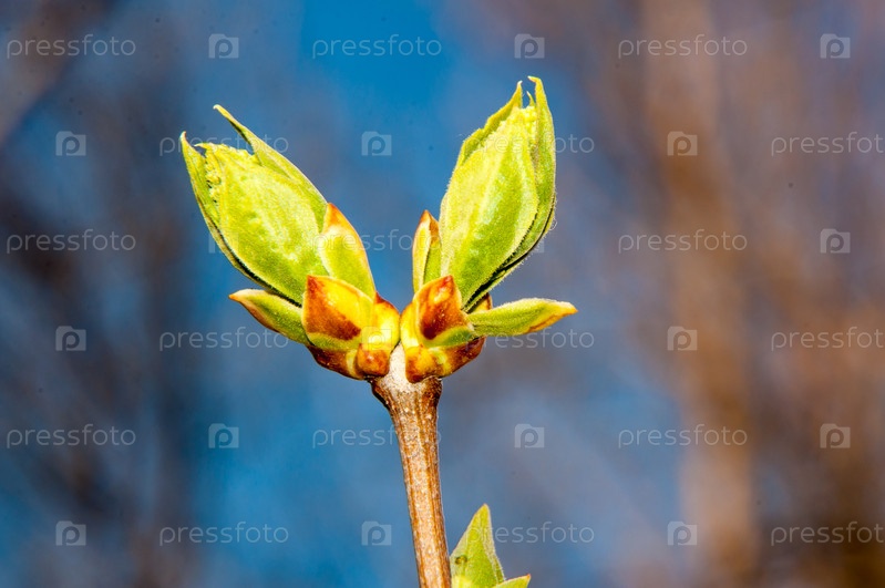 Первые листья сирени весной