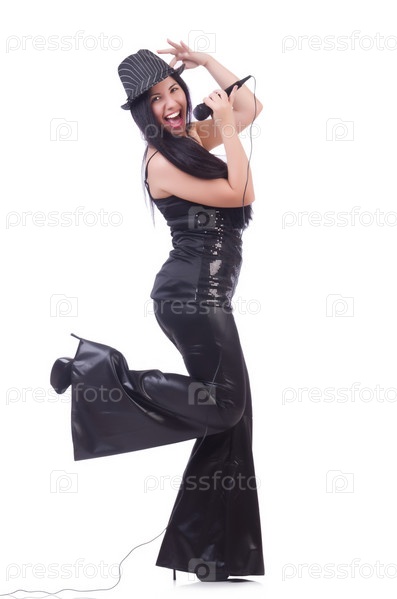 Молодая певица с микрофоном