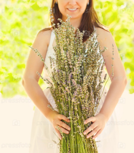 Романтическая женщина с букетом лаванды
