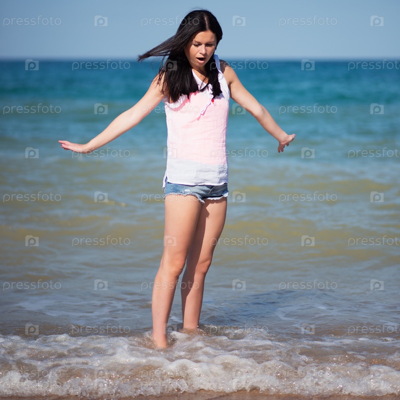 Счастливая женщина на пляже