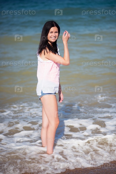 Счастливая женщина на пляже