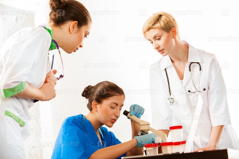 Молодой врач с микроскопом