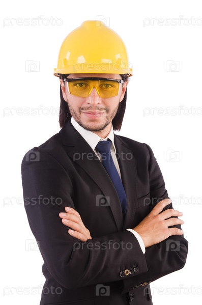 Бизнесмен строитель в защитных очках