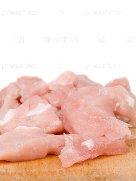 Кусочки свежего мяса на разделочной доске
