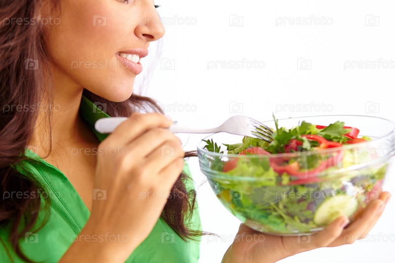Женщина ест салат