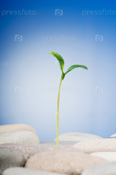 Зеленый росток и камни