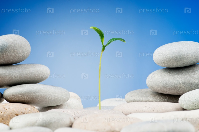 Зеленый росток и камни