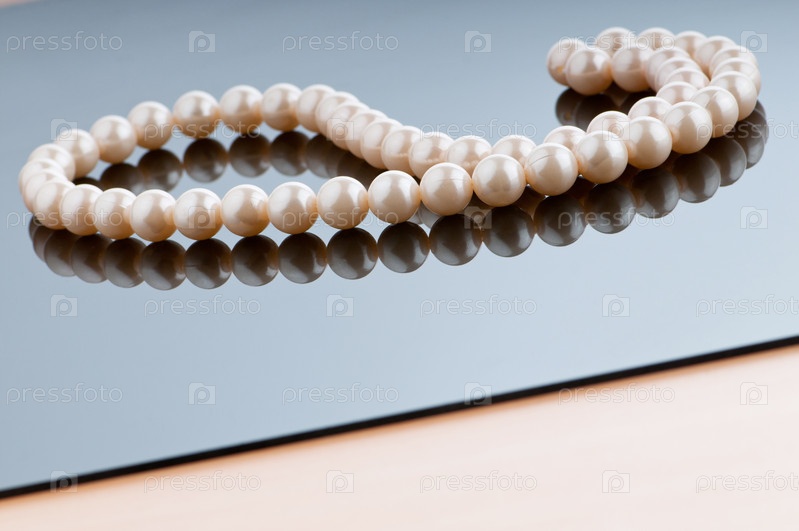 Белое жемчужное ожерелье на зеркале