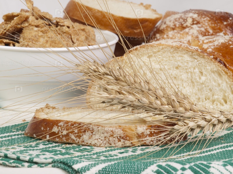 Белый хлеб и колосья пшеницы