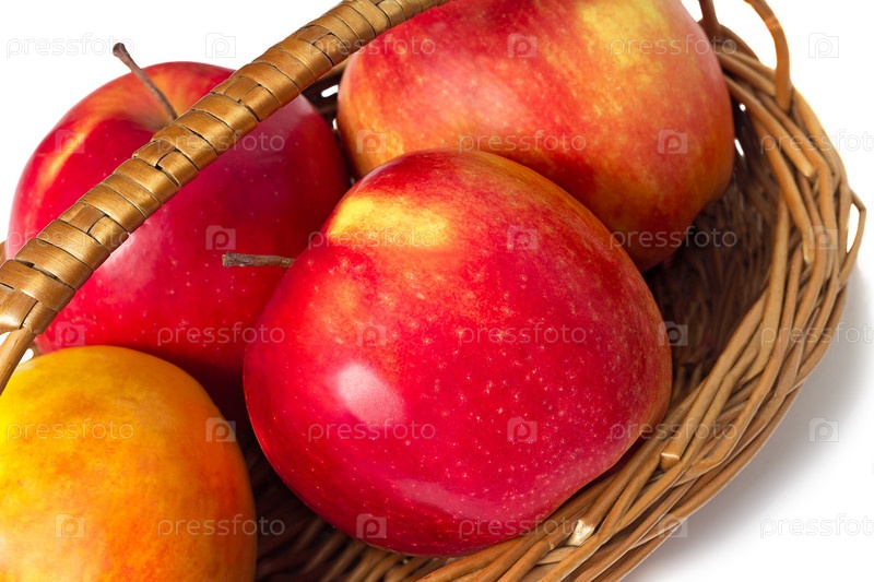 Яблоки в корзине на белом фоне