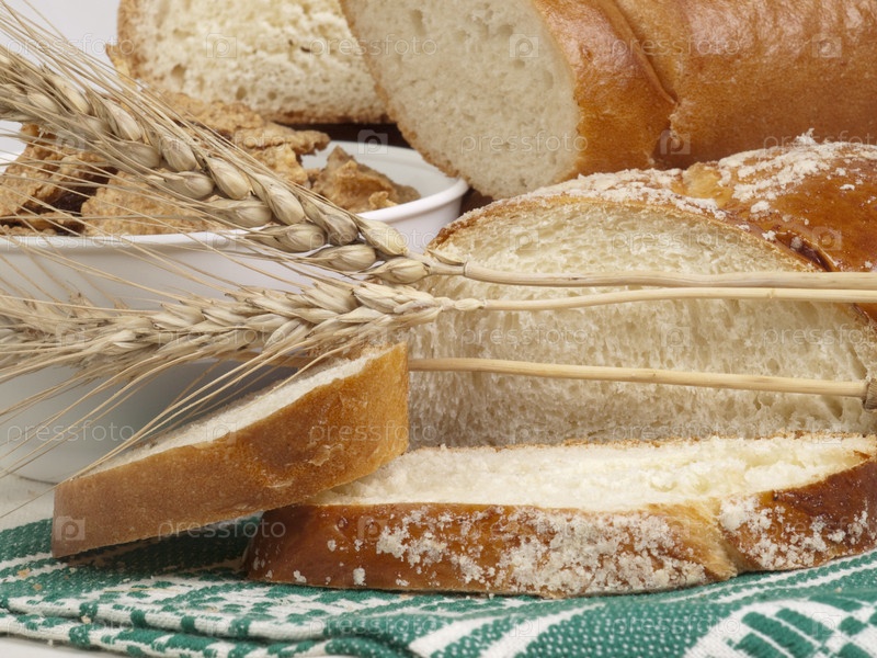 Белый хлеб и колосья пшеницы