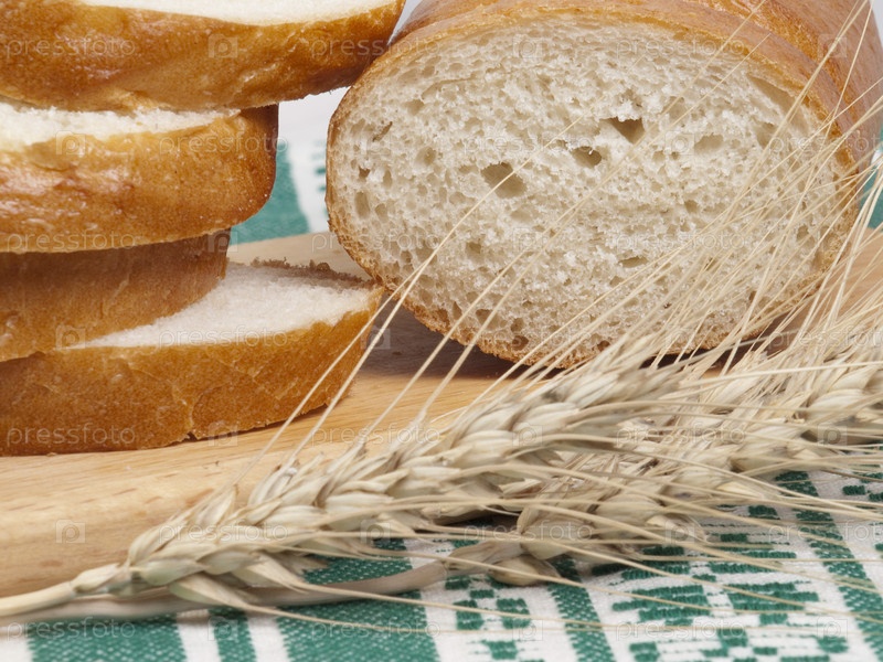 Белый хлеб и колосья пшеницы