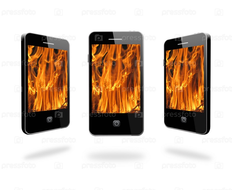 Мобильный телефон с пламенем