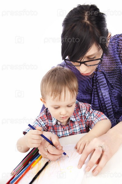 Женщина, занимающаяся с маленьким мальчиком