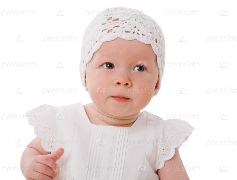 Маленькая девочка в белом чепчике и платье
