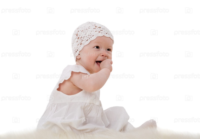 Маленькая девочка в белом чепчике и платье
