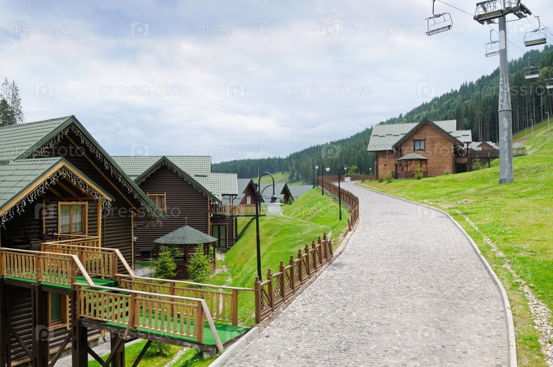Коттеджи и кресельный подъемник в Карпатских горах