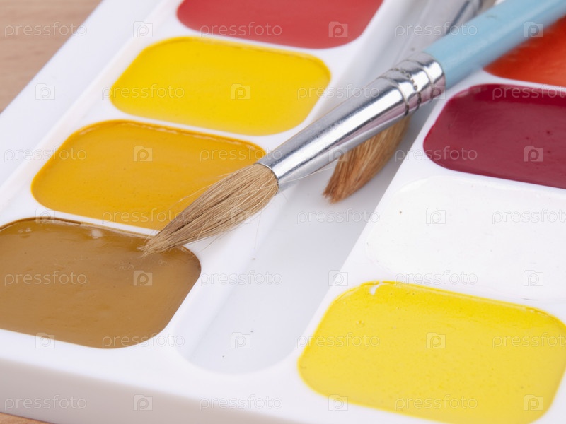 Акварельные краски с кисточками
