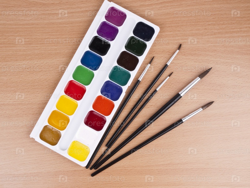 Акварельные краски с кисточками