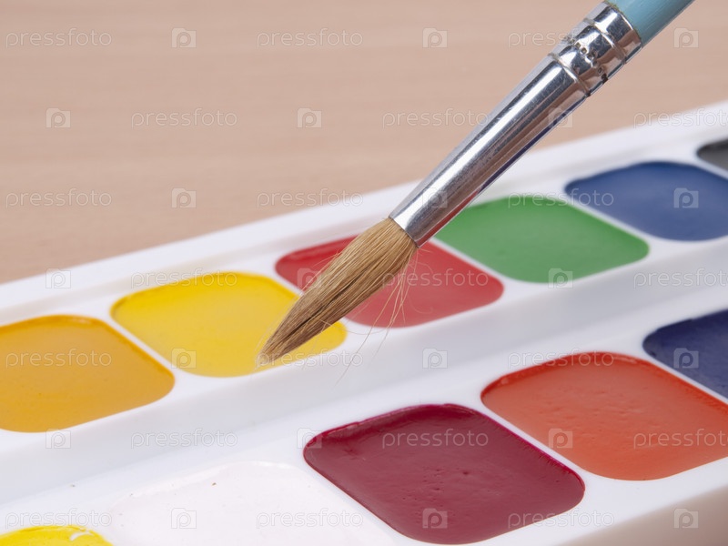 Акварельные краски с кисточкой