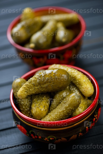 Корнишоны в деревянной хохломской посуде