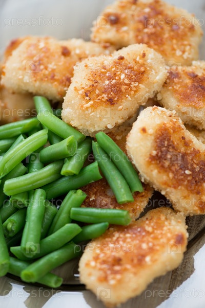 Жареные куриные наггетсы и фасоль