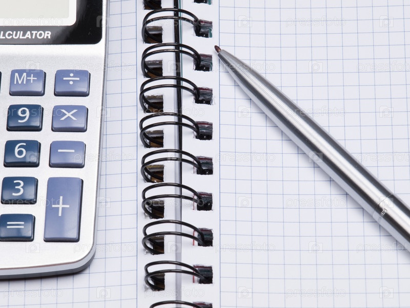 Калькулятор и ручка на открытой тетради