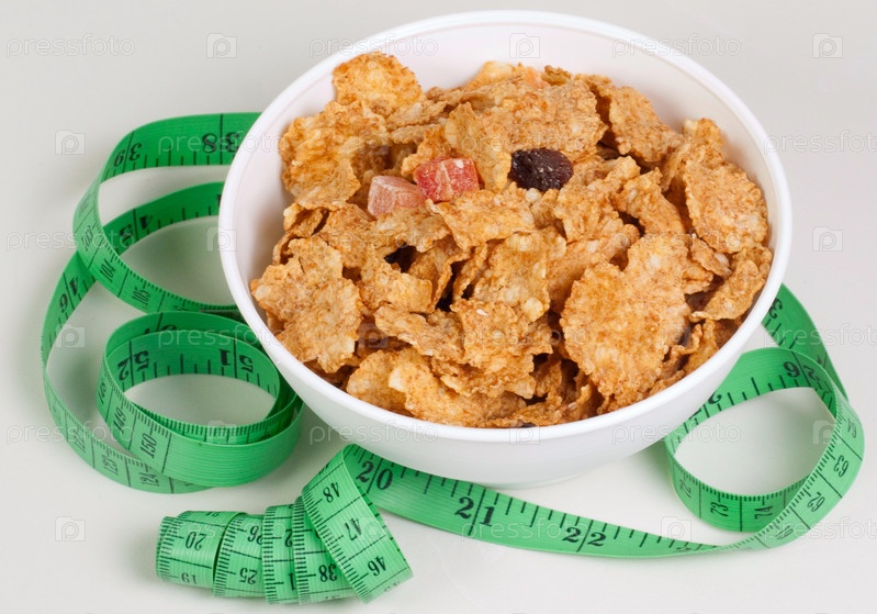Сантиметровая лента у миски с хлопьями
