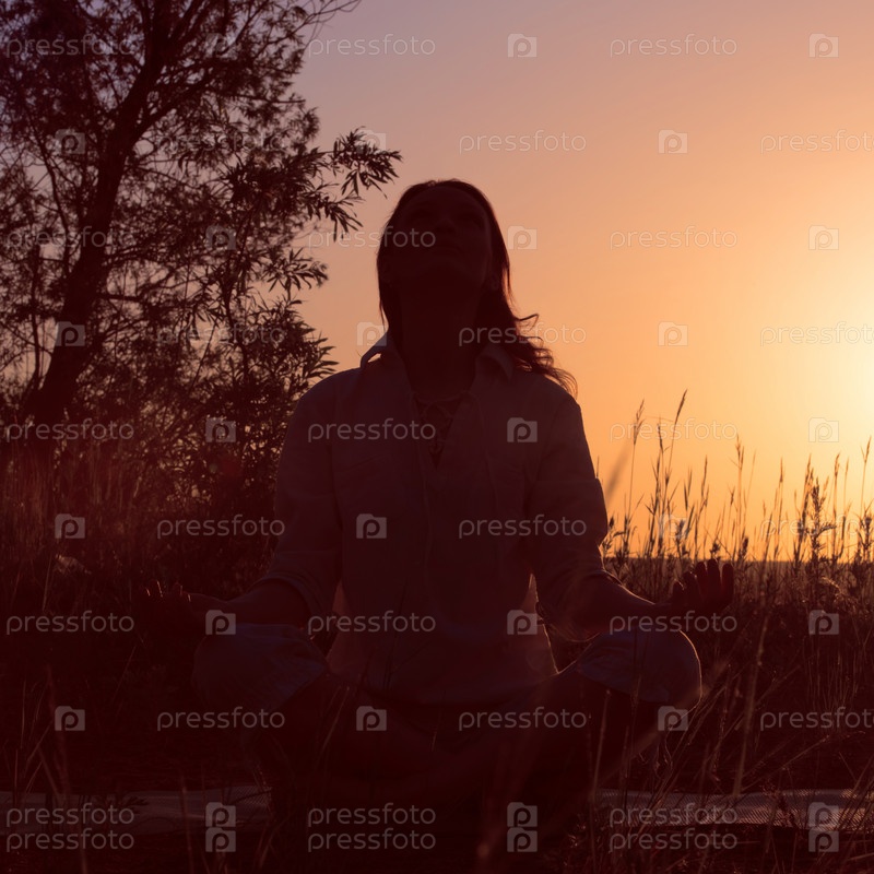 Женщина занимается йогой на открытом воздухе