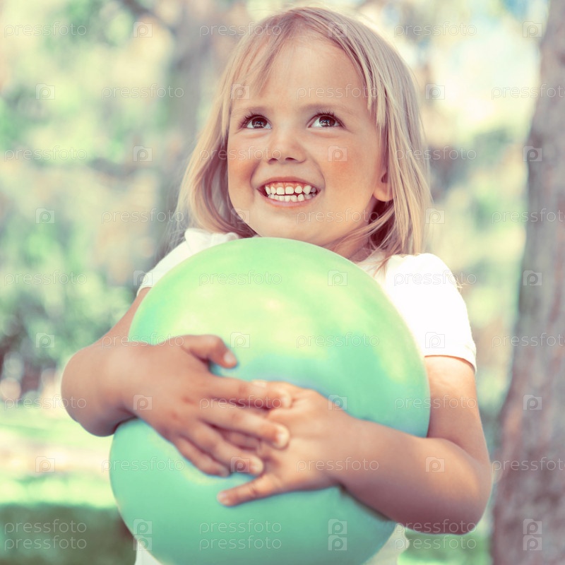 Девочка играет с мячом в парке