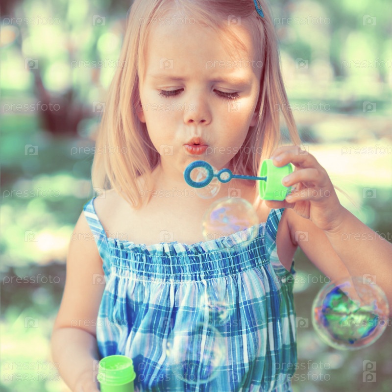 маленькая девочка с мыльными пузырями