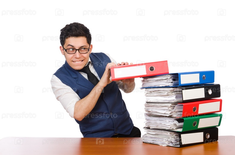 Мужчина с большим количеством папок