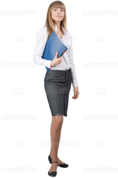 Деловая женщина с папкой на белом фоне