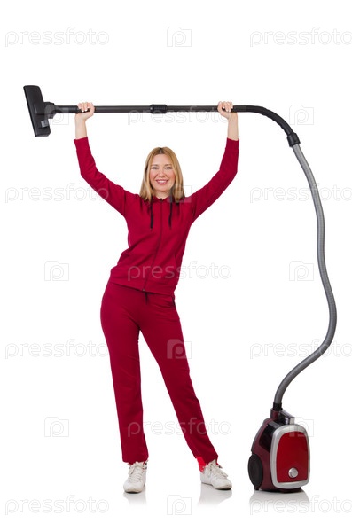 Молодая женщина с пылесосом